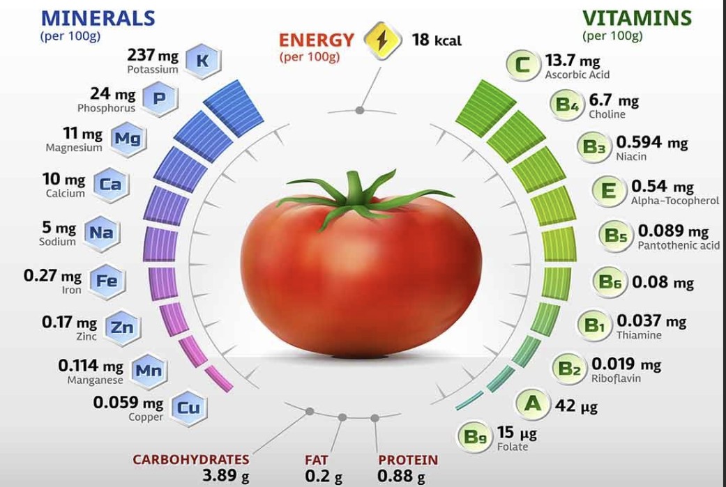 Tomatoes are packed with essential nutrients, making them a healthy addition to any diet. They are an excellent source of vitamins C and K, potassium, and folate. Tomatoes also contain lycopene, a powerful antioxidant known for its potential health benefits, including reducing the risk of heart disease and certain cancers. Additionally, they are low in calories and high in water content, which supports hydration and overall well-being.